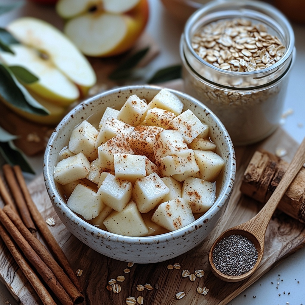 This Apple Cinnamon Overnight Oats recipe is a quick, nutritious, and delicious breakfast option combining tender microwaved apples with rolled oats, chia seeds, cinnamon, and your choice of plant-based milk, sweetened naturally with maple syrup or honey. Perfect for a ready-to-eat morning meal that’s both comforting and energizing.