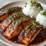 This salmon pairs wonderfully with simple sides to let the main dish shine. Steamed jasmine rice or coconut rice complements the sauce’s sweetness. Lightly steamed vegetables like broccoli, snap peas, or sautéed bok choy add vibrant color and balance. For a heartier option, try a tangy Asian slaw or a crisp cucumber salad.