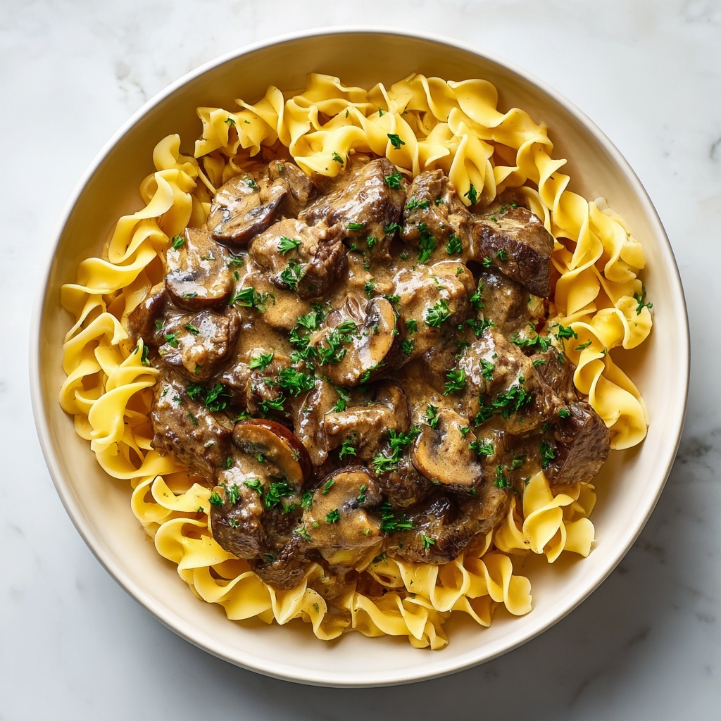 For a fun presentation twist, try serving the stroganoff in individual shallow bowls with a sprinkle of parsley on top and a small side of crusty bread to soak up every last drop of sauce. Alternatively, layering the noodles and stroganoff in a clear casserole dish creates an enticing visual of creamy mushroom sauce interspersed with tender beef slices that will wow guests.