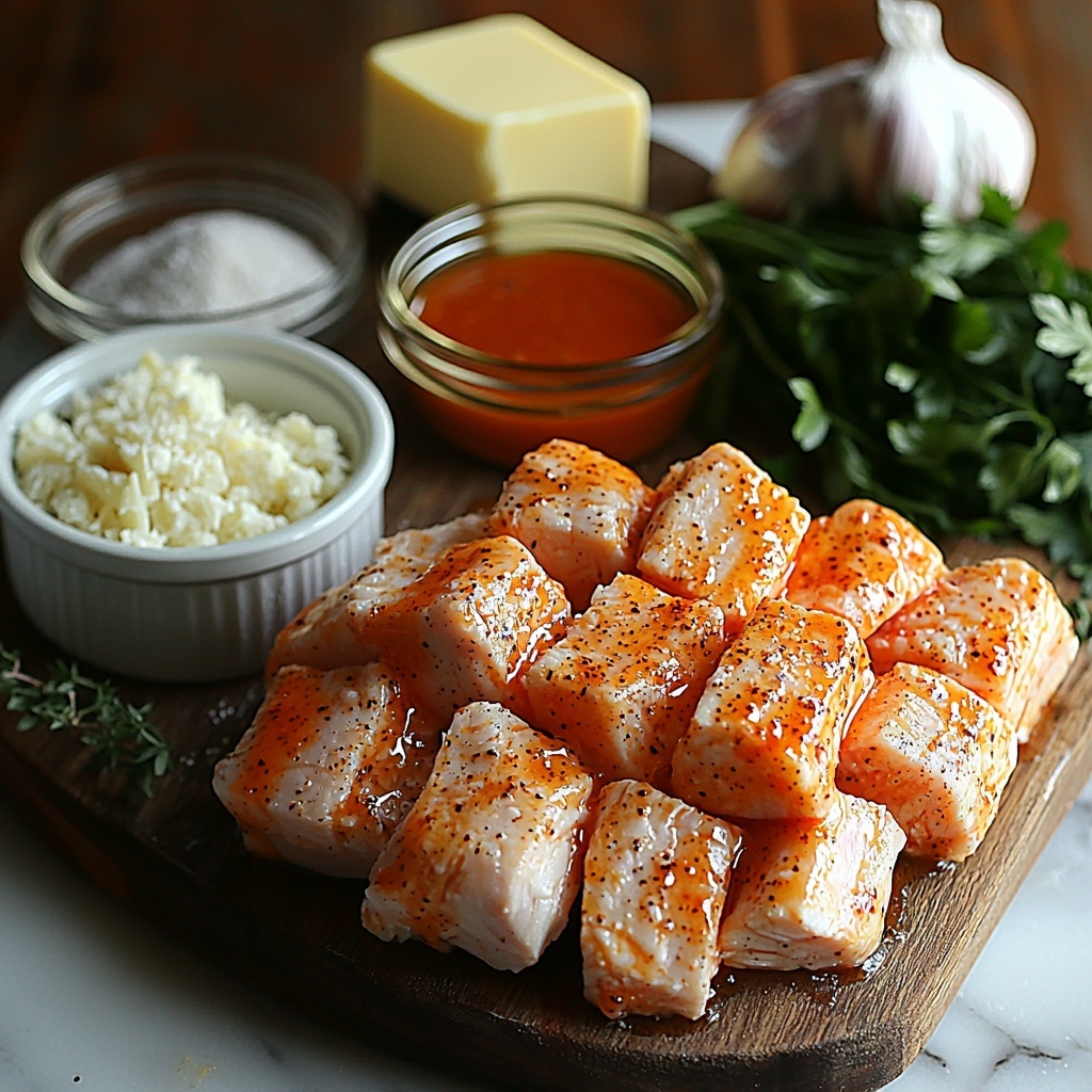 • Buffalo sauce (1/2 cup): Infuses tangy, spicy goodness straight onto the chicken bites.