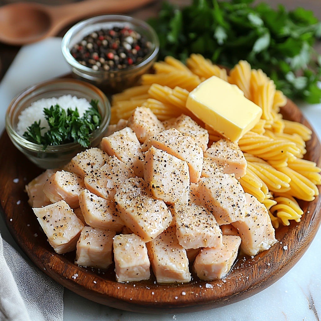 The secret to this Cheesy Alfredo Twisted Pasta with Garlic Butter Chicken Recipe’s charm lies in the simplicity and freshness of the ingredients. Each component plays a crucial role, from the creamy heavy cream that forms the luscious sauce, to the aromatic garlic butter that elevates the chicken, right down to the vibrant parsley finish that adds a pop of color.