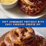 Homemade cheesy pretzels paired with a creamy, flavorful cheese dip make the perfect snack or appetizer. This recipe guides you through making soft pretzel dough, boiling them for a perfect crust, baking to golden brown, and preparing a luscious cheddar cheese dip infused with garlic and mustard powder.