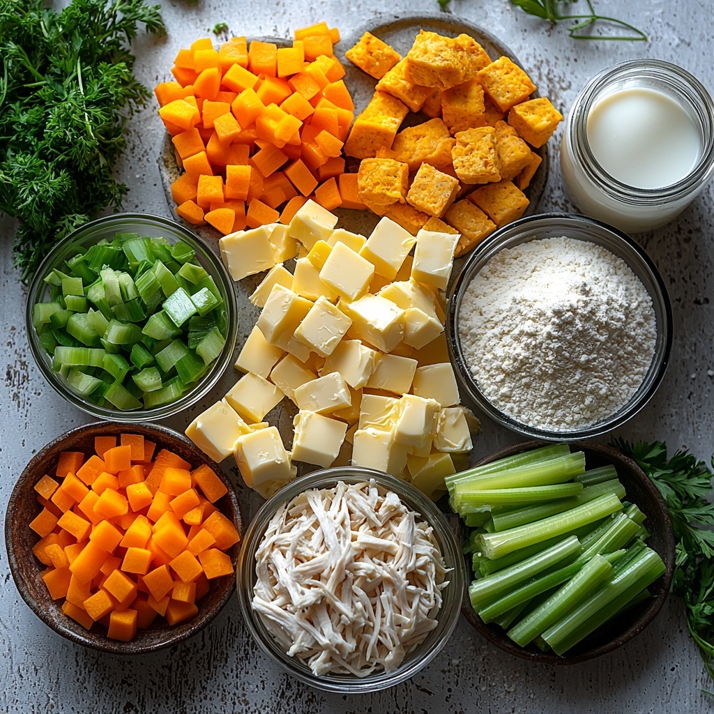 - Diced celery: One cup contributes a slight crunch and herbaceous undertones that complement the chicken.
