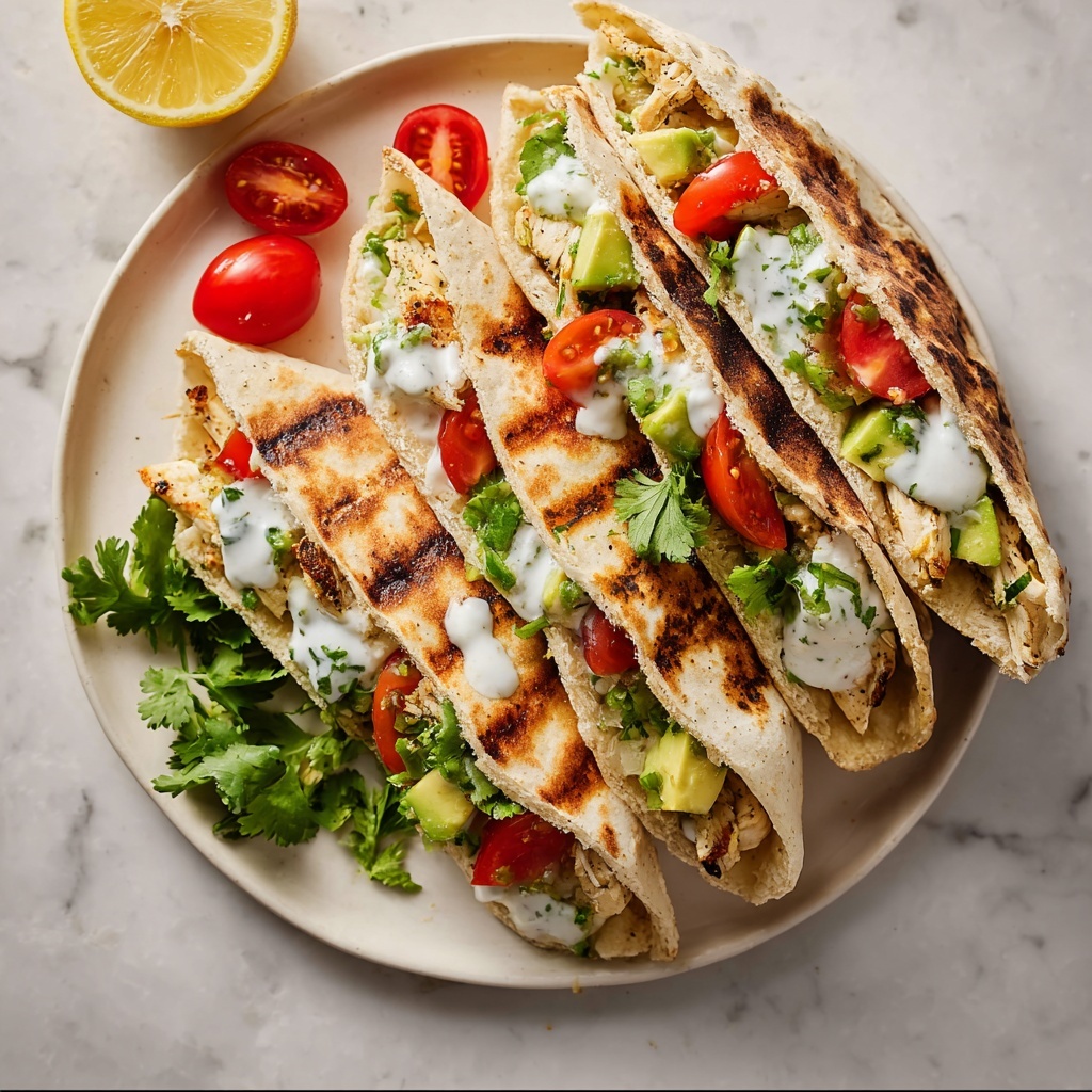 Drizzle some of the yogurt sauce over the chicken inside each pita, then top generously with the avocado tomato mixture. This layered construction ensures every bite delivers a harmonious blend of creamy, tangy, and fresh flavors.