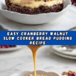 This Cranberry Walnut Slow Cooker Bread Pudding is a comforting and delicious dessert perfect for cozy gatherings. Featuring tender bread cubes soaked in a cinnamon vanilla custard with sweet maple syrup, tart dried cranberries, and crunchy walnuts, it is slow cooked to a perfect creamy texture. The addition of a luscious condensed milk glaze with brown sugar and butter adds a rich finish that makes this bread pudding irresistible.