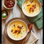 This creamy baked potato soup recipe features perfectly roasted russet potatoes blended into a rich and velvety base, enriched with savory bacon, sautéed onions, garlic, and cheddar cheese. It is comfort food at its best—easy to make and ideal for cozy family dinners or cold weather meals.