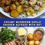 Creamy Mushroom Garlic Chicken Alfredo with Hot Honey Roasted Potatoes Recipe