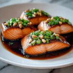 7. Glaze and garnish: Drizzle any remaining glaze over the cooked salmon and garnish generously with chopped green onions before serving.
