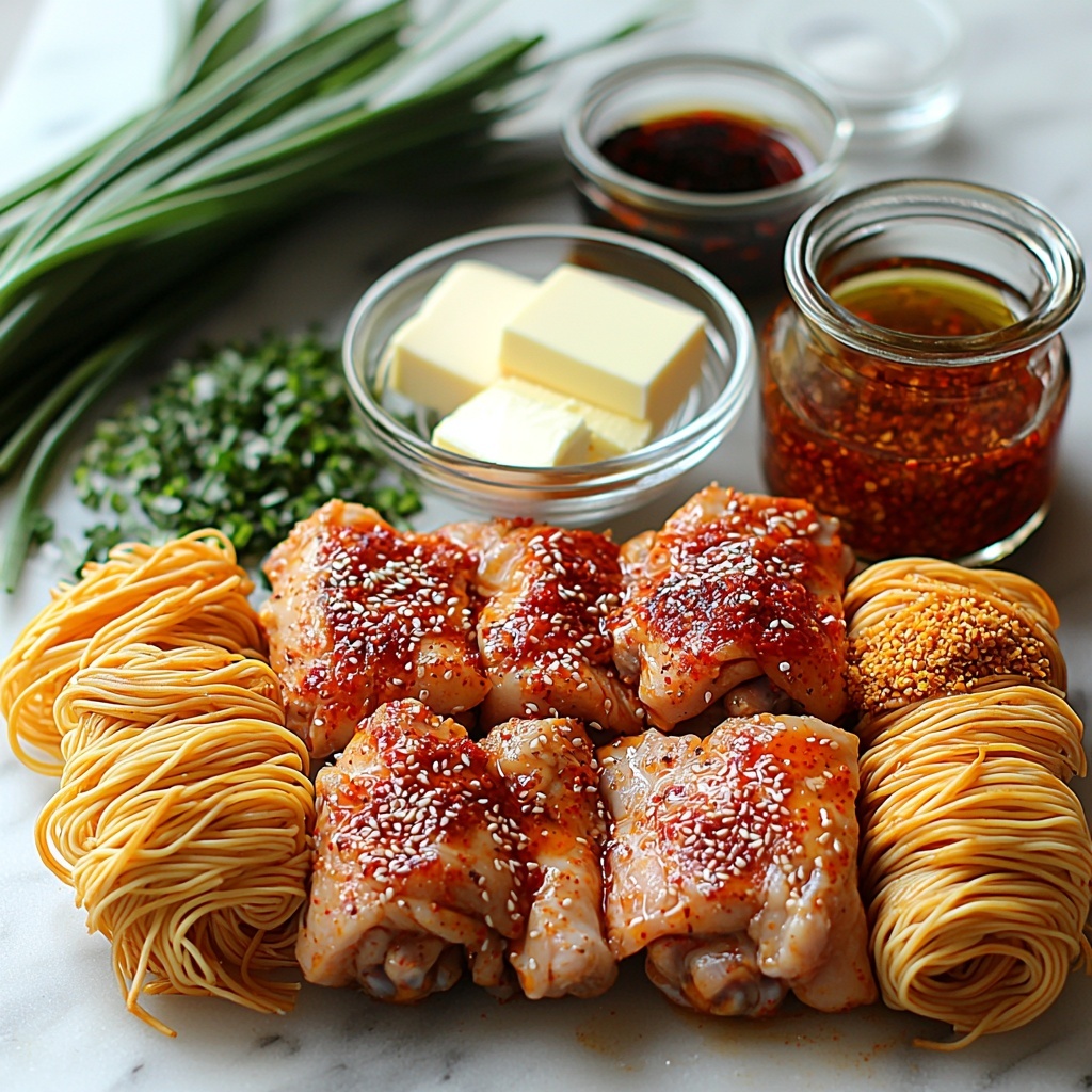 These ingredients are straightforward but essential for building the layers of flavor and texture that make this dish a standout. Each one plays a vital role—whether it’s the spices that bring heat, the broth that enriches the noodles, or the creamy garlic sauce that adds that dreamy finish.