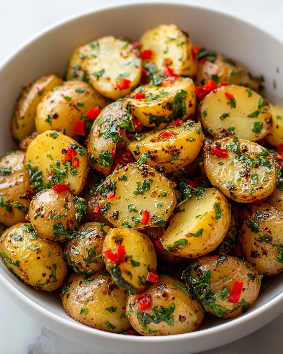 Freezing is not recommended for this salad because the texture of cooked potatoes and fresh herbs tends to degrade once thawed. You’ll get the best results enjoying it fresh or within a few days after preparation.