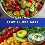 A vibrant and flavorful Cajun Chicken Salad featuring juicy, seasoned chicken breasts served atop fresh mixed greens and colorful vegetables, drizzled with a creamy, spicy Cajun dressing. Perfect for a wholesome lunch or light dinner.