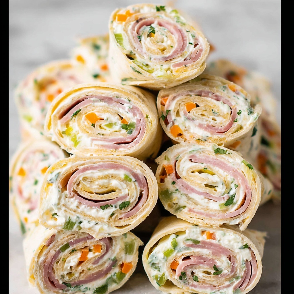 Yes, simply omit the ham and add extra veggies like finely chopped bell peppers, cucumbers, or roasted mushrooms to keep the roll-ups filling and flavorful without meat.