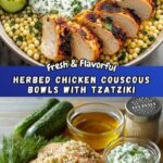 This vibrant Herbed Chicken Couscous Bowl with Tzatziki is a fresh, flavorful meal that combines juicy herb-marinated chicken, fluffy couscous, and creamy cucumber yogurt sauce. Perfectly balanced with aromatic parsley, dill, and mint, it’s a quick and healthy dish ideal for weeknight dinners or meal prep.