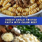Indulgent Cheesy Garlic Twisted Pasta with Cajun Ground Beef Recipe