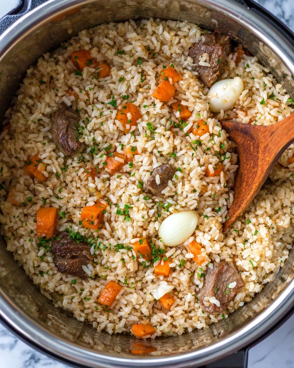 Cut the cream cheese into 6 pieces and place them evenly over the top of the mixture. Seal the Instant Pot lid securely and switch the valve to the ‘sealing’ position. Set it to cook on manual high pressure for 20 minutes. When the time is up, allow the pressure to release naturally for 10 minutes, then switch the valve to ‘venting’ to release any remaining steam before opening.