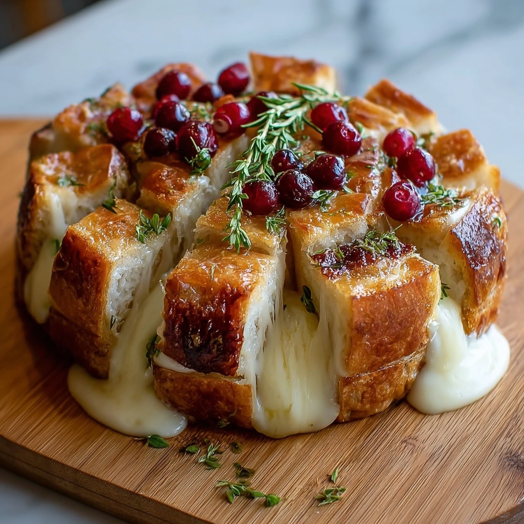 Serve this bread on a rustic wooden board surrounded by clusters of fresh cranberries or small bowls of honey and extra herbs. Alternatively, cut it into bite-sized pieces and serve as an elegant appetizer at your next gathering—the ooey gooey center will have guests lining up for seconds.