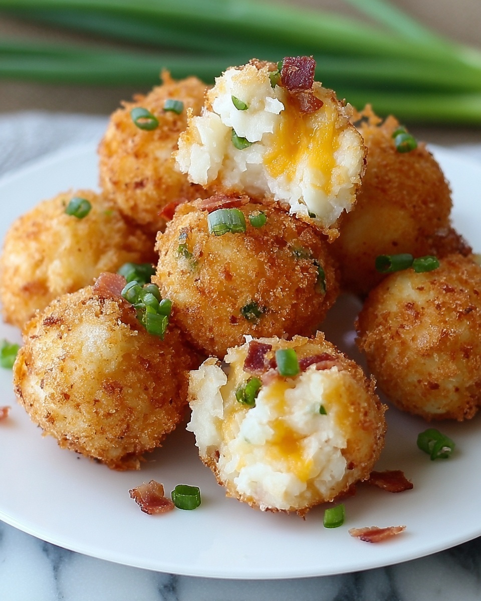 If you are on the lookout for a snack that combines comfort, flavor, and a touch of indulgence, look no further than this Loaded Mashed Potato Bites Recipe. These little golden orbs pack all the creamy goodness of mashed potatoes with crispy, cheesy, and smoky bacon bits, all perfectly breaded and fried to a irresistible crunch. Whether you need a party appetizer or a cozy treat, this recipe will quickly become a beloved favorite in your kitchen.