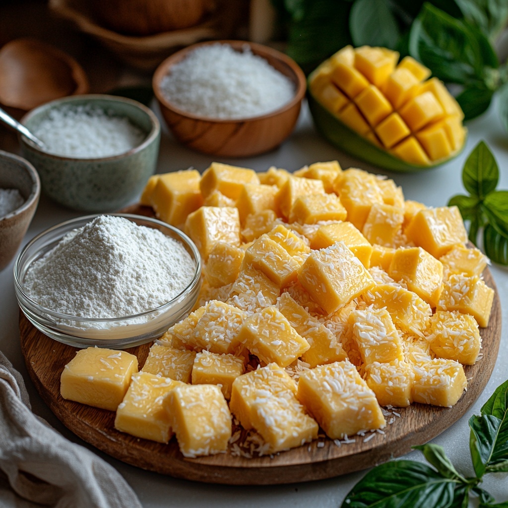 The magic of this recipe is in its simplicity; each ingredient plays a crucial role to create that perfect balance of flavor and texture you expect from mango sticky rice, but in cookie form. Let’s break down what you’ll need: