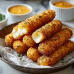 Try serving these sticks in individual paper cone holders or mini baskets lined with parchment paper to bring a fun, casual vibe to your gathering. You can even arrange them on a platter with dipping bowls featuring different sauces, such as a creamy avocado dip, spicy marinara, or classic ranch, offering guests multiple flavor adventures.