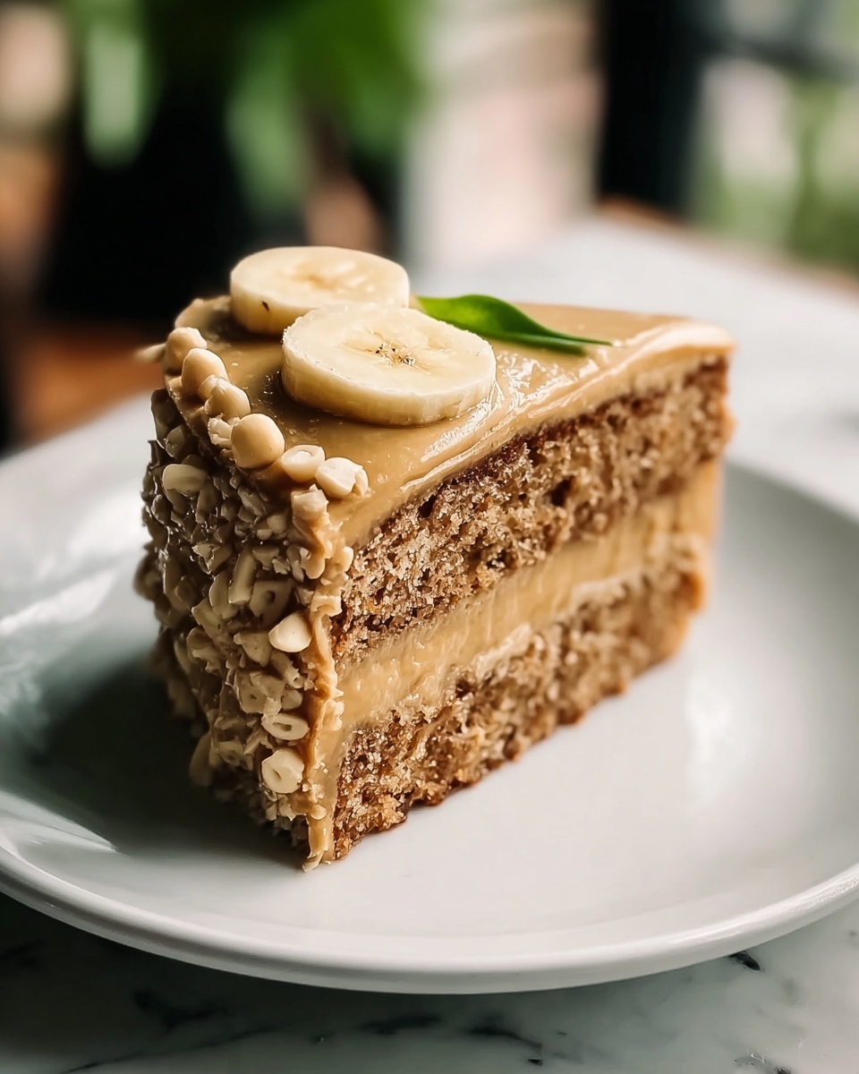 Spread the luscious peanut butter frosting evenly over the cooled cake. Garnish with sliced bananas, crushed peanuts, and a drizzle of melted chocolate or peanut butter for an extra decadent touch that will impress anyone who tries it.