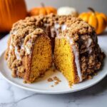 This Pumpkin Coffee Cake is a delightful autumn treat featuring tender, spiced pumpkin cake topped with a crumbly cinnamon streusel and finished with a sweet vanilla glaze. Perfect for breakfast or a cozy snack, it combines warm spices and moist pumpkin for a comforting flavor experience.