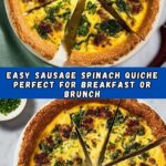 A savory and satisfying Sausage Spinach Quiche featuring a flaky pie crust filled with browned breakfast sausage, fresh spinach, and a creamy cheese custard, perfect for breakfast, brunch, or a light dinner.