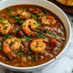 This Savory Louisiana Seafood Gumbo is a hearty and flavorful comfort food, combining a rich dark roux with a medley of vegetables, spicy andouille sausage, tender shrimp, and sweet crab meat. Perfectly seasoned with Cajun spices, this traditional dish simmers to develop a deep, complex taste that’s ideal for warming up any meal. Serve it over fluffy white rice or with cornbread to enjoy an authentic taste of Louisiana.