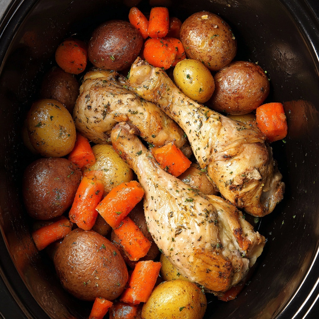 How to Make Slow Cooker Chicken Legs with Roasted Carrots and Baby Potatoes Recipe