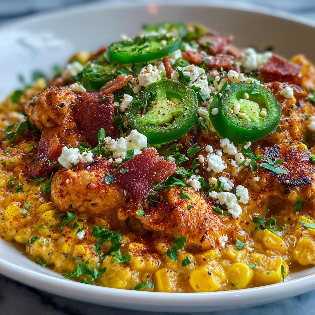 Slow Cooker Street Corn Chicken is a flavorful, creamy dish combining tender shredded chicken with a zesty street corn-inspired sauce. This recipe uses simple spices, canned and frozen corn, peppers, and a blend of creamy ingredients cooked low and slow for a comforting meal perfect for tacos, bowls, or dipping with tortillas.