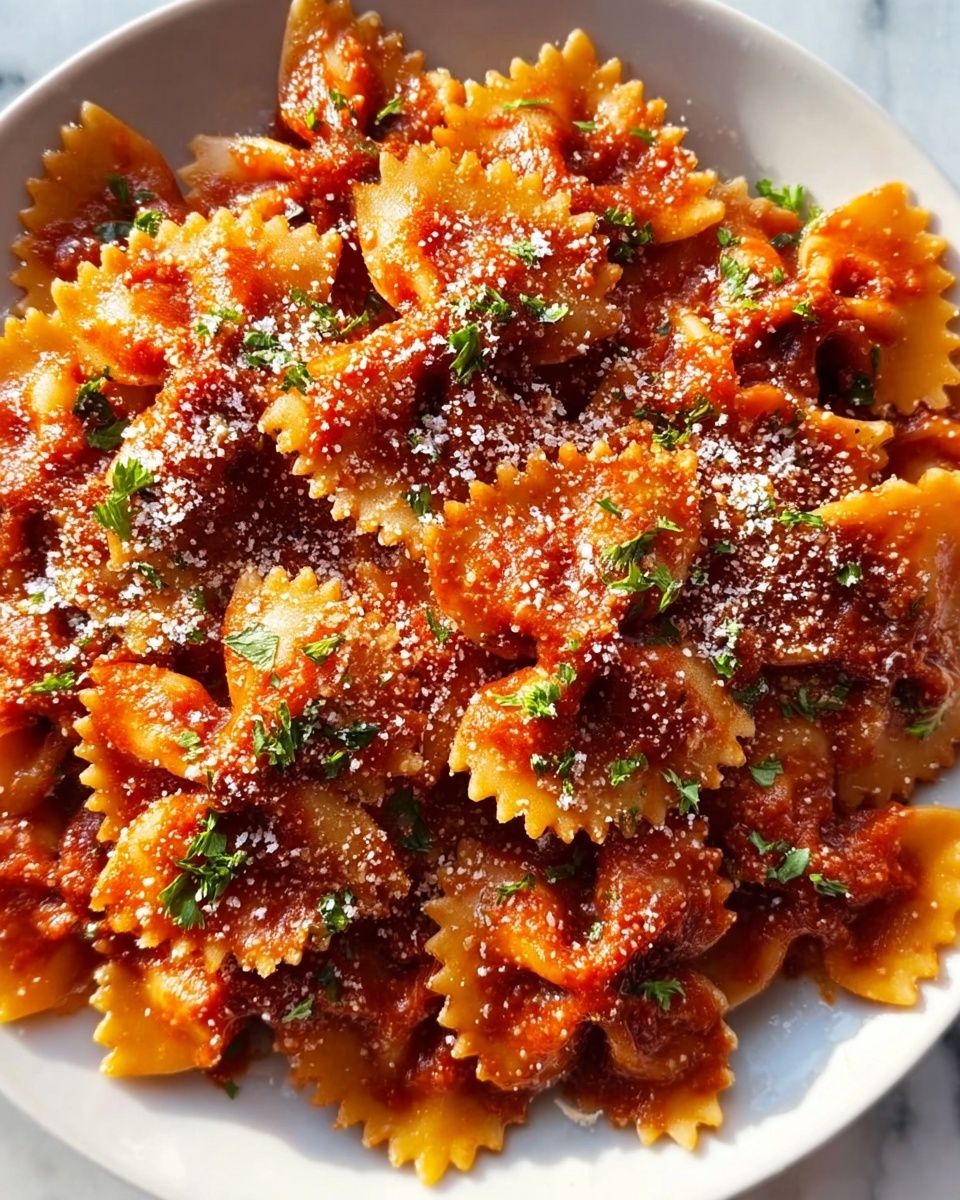 Remove your skillet from heat and stir in the fresh chopped parsley. The bright green herbs add a fresh contrast to the depth of flavors. Serve your pasta hot, and if you love a cheesy layer, sprinkle on some grated Parmesan to finish. Taste one last time and adjust your seasoning—adding extra red pepper flakes if you want to dial up the heat.
