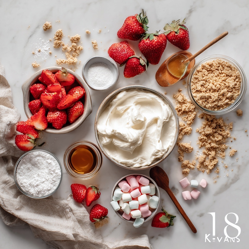 Gathering the ingredients for this recipe is a breeze, and each one plays a vital role in creating the perfect balance of creaminess, sweetness, and texture. From fresh strawberries that bring natural brightness to the fluffy whipped topping that makes the dish so light, every component is essential.