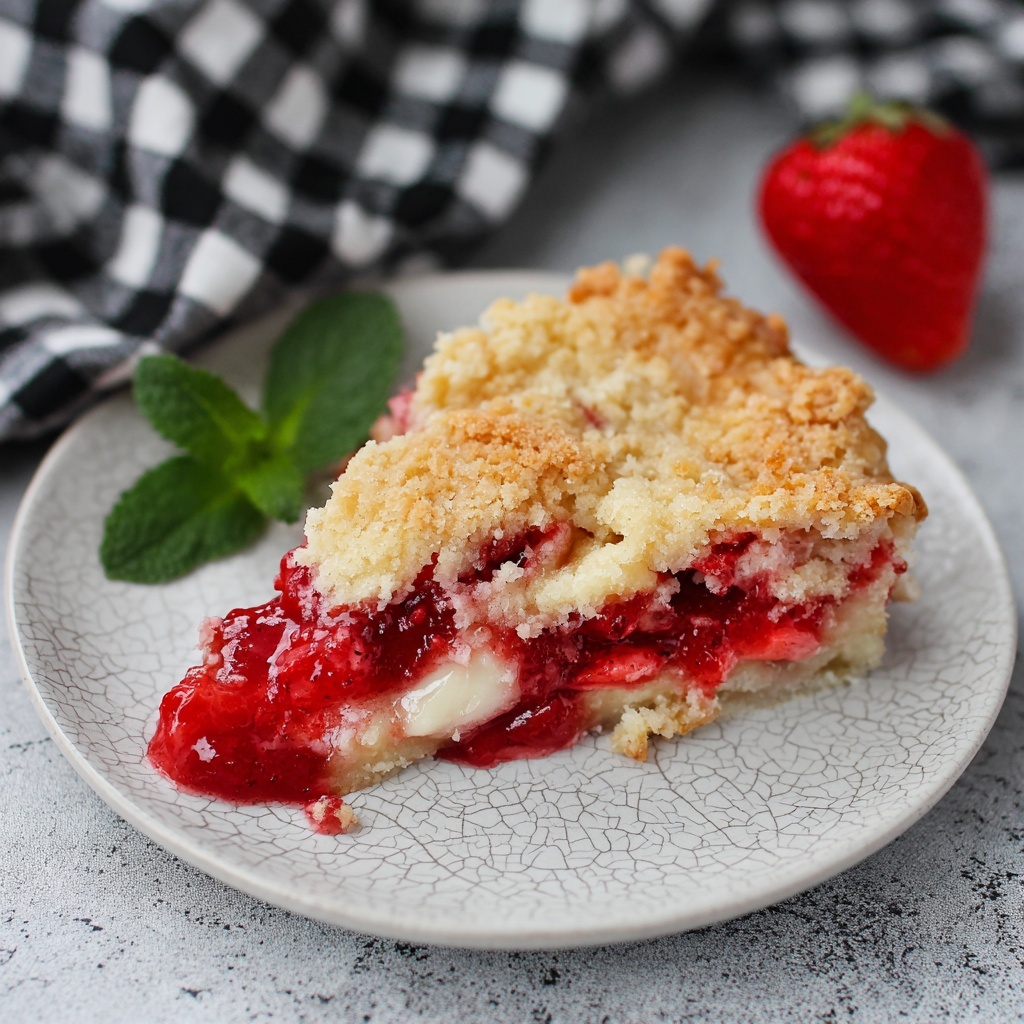 Spread the strawberry pie filling evenly across the bottom of your prepared pan. Next, drop generous spoonfuls of the cream cheese mixture over the strawberries. If you’re feeling creative, you can gently swirl the two a little—this step adds visual interest and a lovely flavor mix.