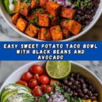 - Assemble Taco Bowls: In serving bowls, start with a layer of roasted sweet potatoes and then top with the black bean and vegetable mixture.