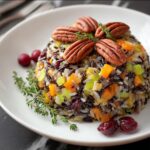Stir in the dried cranberries and toasted pecans, gently folding them into the rice mixture. These elements introduce contrasting textures—the chew of cranberries and the crunch of pecans—that make this Thanksgiving Wild Rice with Cranberries and Pecans Recipe truly special.