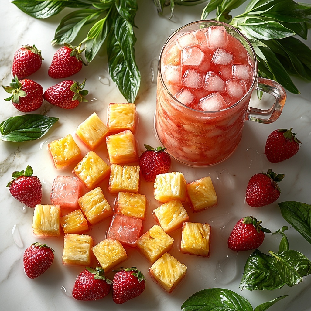 A simple slice of fresh pineapple and a ripe strawberry are classic garnishes that complement this drink beautifully. You can also sprinkle a little toasted coconut or add a colorful paper umbrella to give it that authentic tropical party vibe.