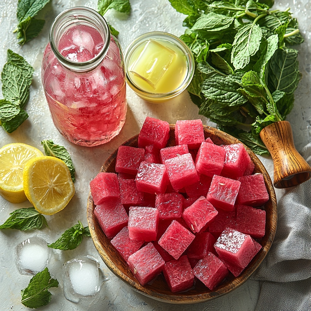 Next, place the fresh mint leaves in a tall pitcher and gently muddle to release their oils. This process allows the mint’s bright and cooling flavors to infuse the punch without overpowering it. You want to bruise the leaves just enough to unleash their aroma, making your Watermelon Gin Punch Recipe extraordinarily fragrant and refreshing.